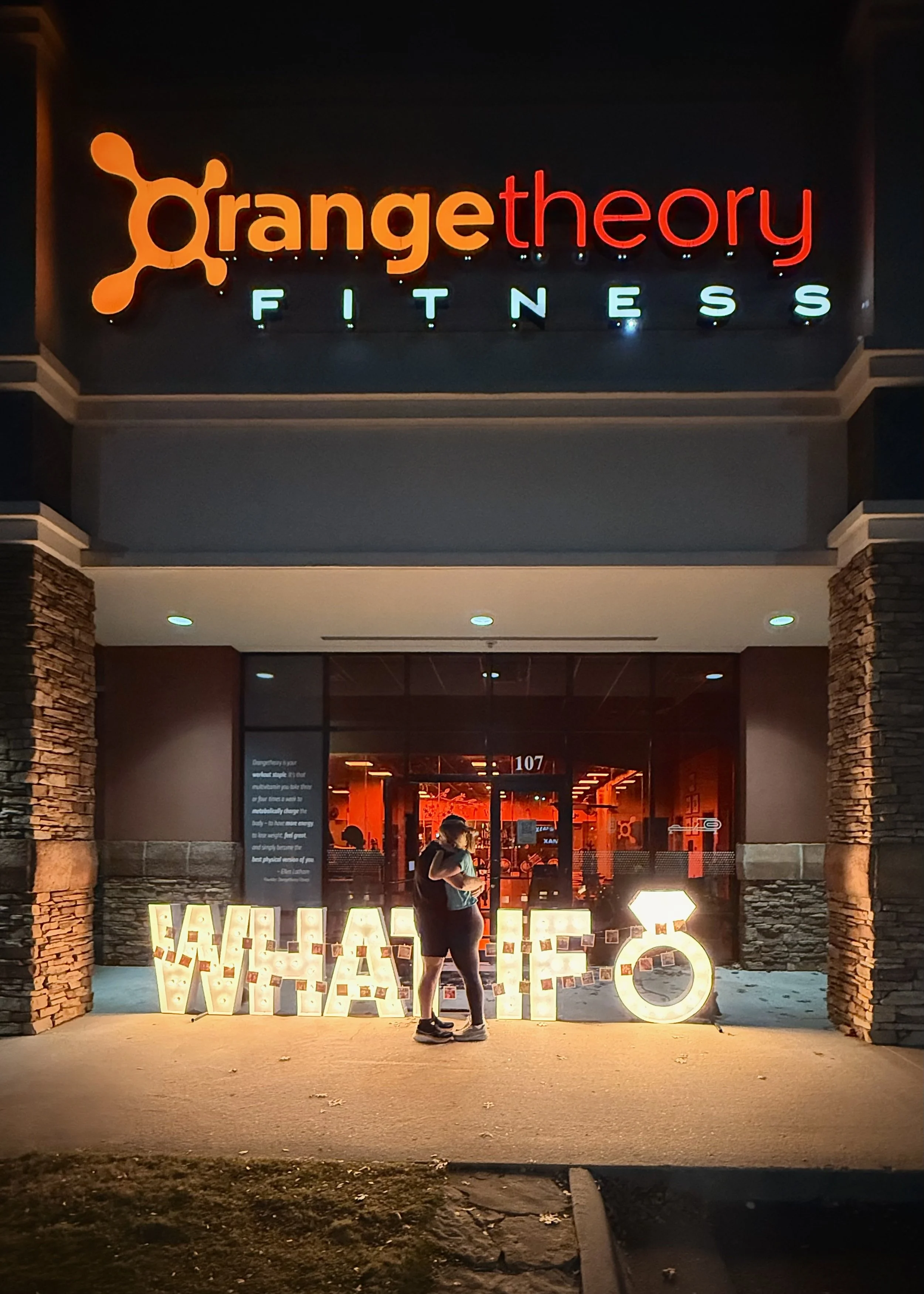 A week after celebrating two years together, Travis proposed — back at Orange Theory, the place that unknowingly started it all. It was the perfect full‑circle moment.